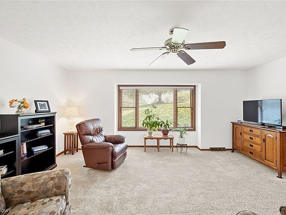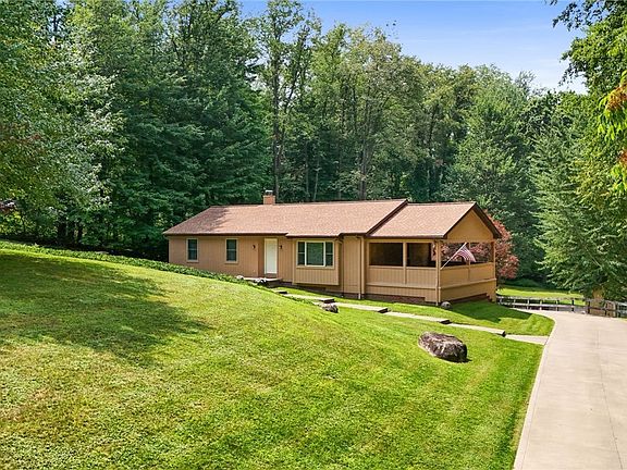 This delightful 3 bedroom, 2 bath Classic Homes built ranch offers a perfect blend of comfort, style, and serene surroundings, making it an ideal place to call your own. March of 2023 the roof on the home was replaced, July of 2023 this home received some freshening up with a neutral interior paint job, new granite countertops in the kitchen and both baths, Lifeproof flooring in kitchen and both baths as well as new toilets, sinks, faucets and hardware. Both exterior doors were replaced as well as a new stove. A new furnace and AC unit were installed in Sept of 2021 which help with the low utility bills of the home along with newer Pella windows, the home is also constructed with 2x6 exterior walls. There is a wood/coal burning furnace in the basement that can be used for a supplemental heat source if desired. Speaking of the basement, it is partially finished with a walk-out. The flooring is durable Nature Stone. The 13x26 covered porch off of the dining room is the "star" of