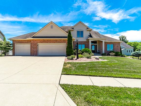 ***OPEN HOUSE THIS SUNDAY 8/18/24 FROM 11AM-4PM***Welcome to your dream home in the prestigious Lakes of Brooks Crossing neighborhood! This expansive 4-bedroom, 3.5-bathroom residence offers luxury and comfort at every turn. The main floor boasts an elegant en suite master bedroom with a spacious walk-in closet and a spa-like bathroom, providing a private retreat. The living room impresses with a soaring two-story ceiling and stunning floor-to-ceiling windows that frame a beautiful fireplace, filling the space with natural light. Upstairs, you'll find three generously sized bedrooms and a full bathroom, perfect for family or guests. The high-end kitchen features a large island, ideal for both casual dining and entertaining, complemented by custom flooring that extends throughout the home. The fully finished basement is an entertainer's paradise! It's complete with a rec room that includes a built-in entertainment center, a full wet bar, and a full bathroom, all illuminated by a large basement window that floods the area with daylight. A bonus den offers flexibility as a home office, music room, or exercise space. Step outside to your fenced-in backyard, where a permanent canopy shades a custom patio—perfect for enjoying relaxing evenings and weekends. The meticulously landscaped yard and welcoming foyer make a lasting first impression. Located close to top-rated schools with easy access to Lima Road, this home combines luxury living with everyday convenience.
