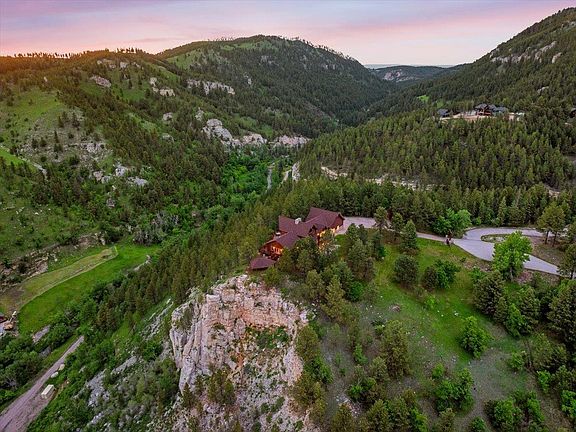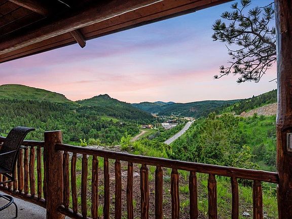 For more information, please contact listing agents Heath Gran 605-209-2052 or Scot Munro 605-641-6482 with Great Peaks Realty. Remarkable 4-bedroom home on a private cliff top towering above Boulder Canyon & Deadwood, just 1 mile to downtown Deadwood! The views from the wrap around deck & gazebo are unlike any other you will find anywhere in the Hills! Large gourmet kitchen equipped with gas range, double ovens & two granite islands with bar seating. Master ensuite features double-sided fireplace, two walk-in closets, spacious bathroom with two vanities, soaker tub & walk-in tile shower. Step out to the private gazebo to enjoy the freshwater spa, new infrared heaters & unmatched views! The lower-level features two additional bedrooms, family room, plus storage room. Open loft could be utilized as a 4th bedroom or the perfect office with a custom-built Murphy bed/desk combo for dual functionality! Property features hardwood floors, updated LVT flooring, fully remodeled garage to include Epoxy floors, wood tongue & groove walls, corrugated tin wainscoting, new wall mounted garage door openers with vertical track & LED lighting! All exterior decks have been replaced with Trex decking, custom made rustic railings include driveway arch & replaced gazebo supports all freshly stained & sealed! Many exceptional improvements have been achieved on this gem. Located in a private cul-de-sac on 5.78 acres, gated driveway. Don't miss this truly remarkable, one-of-a-kind property!