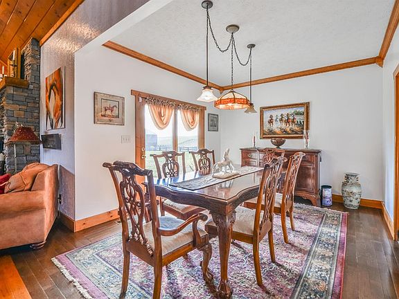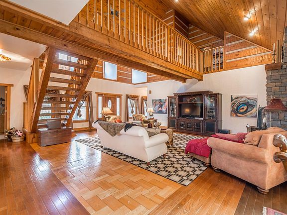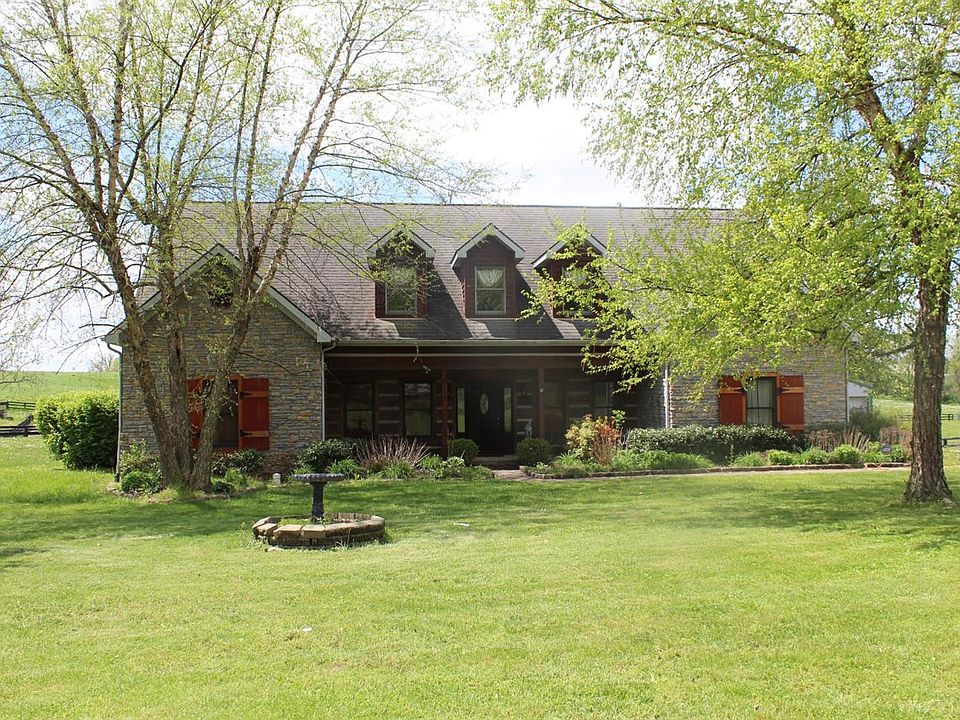 Absolutely gorgeous log and stone home on 10+ equestrian-friendly acres just outside of Paris. Designer finishes, catwalk on 2nd floor overlooks dramatic two-story stone fireplace, first floor master suite with additional guest suite on first floor. 6-stall barn with caretaker apartment, shaving, hay storage, tack, grain, 4 paddocks, 1 field. Horse ready!