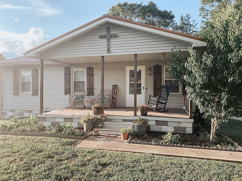 Cute 3 bedroom cottage with basement a stone's throw from the Country Club! Home offers hardwood floors, updated kitchen, 3 bedrooms and 1 bath on the main level and a full basement with a full bath, space for rec room or additional bedroom and a drive out garage. Covered front porch, covered back deck, new metal roof, paved drive and fenced all the way around for pets. Close to town, but not in town! Move in ready home for your family!