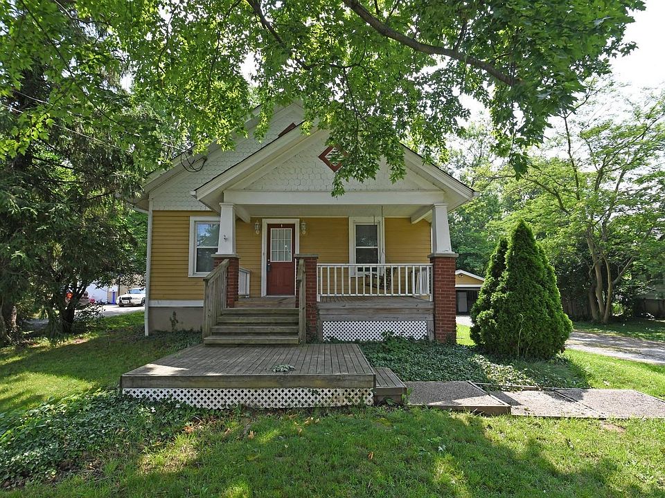 Charming Home! Nice size room with high ceilings! Living Rm open to Dining Rm & Kitchen area. Newer A/C unit, furnace approximately 5 years old, windows & roof approximately 10 years old. Front porch! Nice yard! 2 car detached garage! Deck! Nice size attic if buyer wanted to expand the floor plan! Home to be sold in As Is condition!