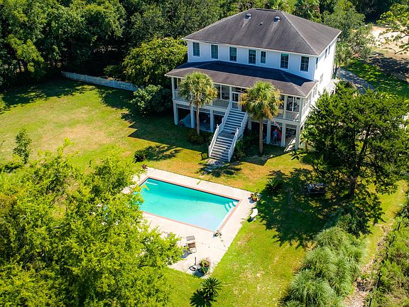 Welcome to 1174 Fort Lamar Rd, located in the historic Villages of Secessionville, close to Folly Road and Downtown Charleston ! This is a classic elevated Lowcountry style home with a full front porch, 10 ft by 30 ft. and a huge rear porch 14 ft by 52 ftm set up for screening. The home is on a large lot, .9 acres with fenced rear yard and swimming pool. enter into a 2 story foyer with marble floors. The main floor has 10 ft ceiling and includes a sitting room, formal dining room, Great Room with gas fireplace, built-in cabinets and shelves, a bedroom and full bath, plus a big kitchen with large island, pantry and laundry room with sink. The kitchen, Great Room and bedroom open to the back porch. The second floor has a master, plus 3 other bedrooms. The ground floor has approximately