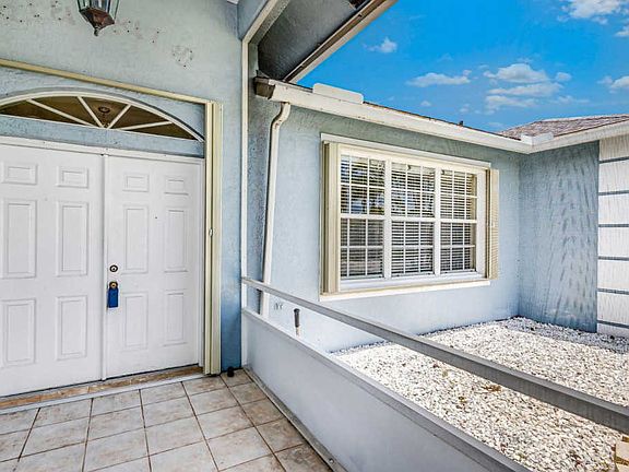 Come and view this home that is centrally situated to shopping, restaurants and more. The split bedroom plan in this well-kept and has space for everyone. Center home kitchen allows you to be part of all the activities going on while your preparing the feast. This layout gives everyone their space from the formals to the family room. The spacious back yard features a covered screened in patio that overlooks the fire pit and tranquil water. Back yard is oversized and fenced all the way around making it safe for all even the dog. Come make this home your new home, as it is ready for you to create your life long memories. Accordion hurricane shutters all the way around.