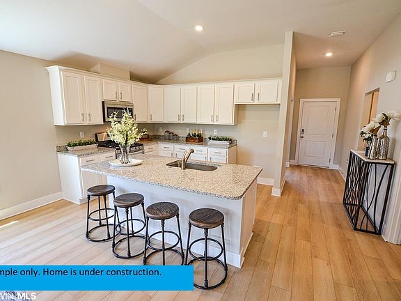 Easy living just minutes away from the beautiful white sand beaches of Gulf Shores and Orange Beach. Welcome to this 4 bedroom, 3 bath, Rushmore Floor Plan (Lot #52) by highly reputable and desirable local builder, Truland Homes! This home features 10 foot ceilings in the main living areas.4th bedroom has en-suite bath which makes this a perfect private suite guests. With Cadet (color) board and batten siding and Dark Knight (color) shutters, this home is light and airy and gives you a feel of a beach cottage. This open floor plan with large windows which allow for natural light is great for gatherings. Brio (Beach Oak color) EVP flooring throughout the home is easy to maintain and durable. The kitchen is the perfect place for entertaining and has painted cabinets, tiled backsplash, stainless steel Samsung appliances, brushed nickel finishes, granite countertops, and stainless steel sink. Truland Homes is known for building quality homes focusing on Height, Light, and Detail. Situated toward the back of the subdivision with 60 foot frontage makes it a great location. Primary bath boasts spacious shower and dual granite vanities with undermount ceramic sinks & plenty of elbow room. Great community pool with 6” Baja tanning shelf. Low HOA fees. This connected home comes complete with a Ring Doorbell, a smart deadbolt lock, a smart things hub, a smart thermostat compatible with Alexa, landscaping package and more! Gold Fortified certification can lower insurance rates. Hurricane fabric storm protection system. Complete with PWSC 10-year warranty. One-year renewable repair and retreatment termite bond with Formosan coverage. This home is estimated to be completed in early 2023. Seller pays up to $5,000 towards buyer closing costs and pre-paid items when using Vault Mortgage. HOA transfer fees are the buyer's responsibility. All final offers to be placed on the Truland Homes contract. Home under construction.