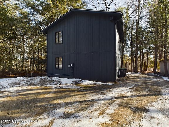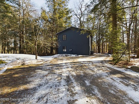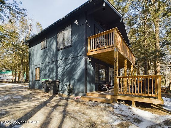 A gem in the middle of the Pocono Mountains. Beautiful home overlooking the golf course. Visualize yourself on you deck, enjoying your hot tub while watching the golfer pass by. Home features double decks, 3 bedrooms, 2 baths, game room/family room. Second floor has endless light, open floor plan for LR/Kitchen/DR and fireplace. Outside home has been freshly painted and new deck. Community has golf course, pool, lake, beach, clubhouse, tennis, fitness center, playground. Close to Pocono attractions, casino, waterparks, hiking, skiing, ATV's.