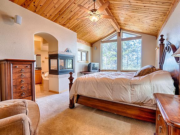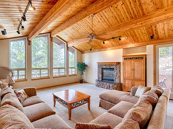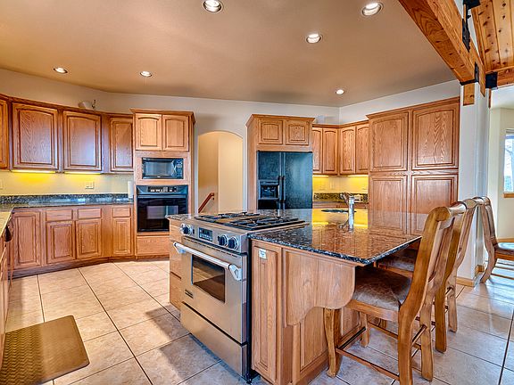 Beautiful home on the hill in the desired Amberwood neighborhood. Enter your new home that will be perfect for entertaining with an open design that leads out to a large patio with views of the peaks from inside and out. Your spacious kitchen will make entertaining fun with granite countertops, oak cabinets, double oven, prep sink and two dishwashers. Get ready to relax in your main level master suite with a two-way fireplace that overlooks the soaking tub accented with travertine tile. Need a quiet workspace? Main level offers a large office with lots of natural light. In this split-level home you can enjoy the daylight basement with an additional