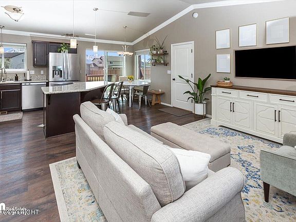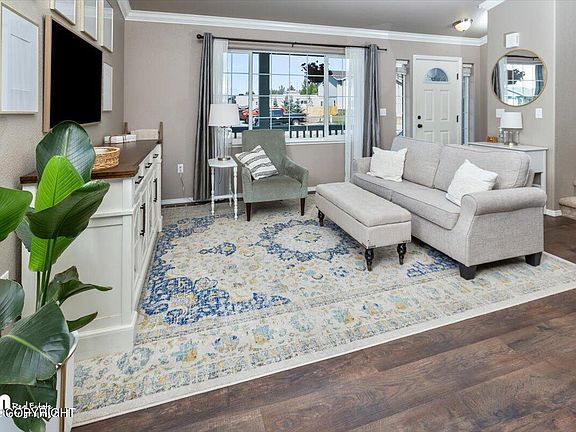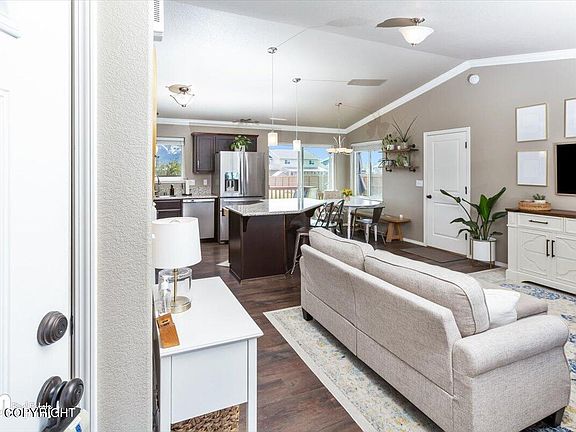 Breathtaking views of Pioneer Peak! - This home has one of the most enjoyable layouts: on the main floor you have an inviting family room, open kitchen and dining area, perfect for everyone to gather together. The lower level is just a few steps away and features a living room, full bathroom and bedroom. Perfect place to spread out and doubles as a playroom, media room, or home office.Upstairs features the master bedroom with private bathroom, double sinks, and large walk-in closet. Additionally, there is a 2nd bedroom and full bathroom. The garage has a man door in the back which opens to the large fenced in yard and patio out back. Home is located in great community with a speedy commute to JBER or Anchorage.