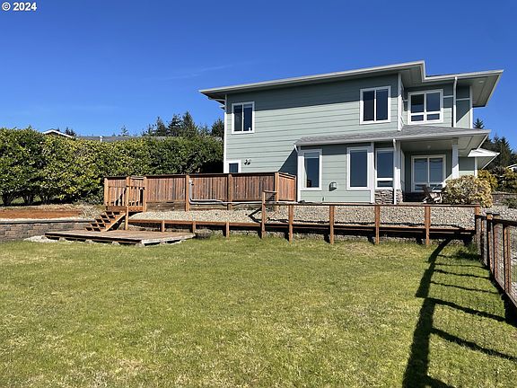 Wonderful home on 2 Legal Lots in desirable location of Pacific Crest. Short drive to the award winning Bandon Dunes Golf Course. 4 Bedrooms/2.5 baths with Owner's Suite on main level with walk-in closet. Open floor concept with amazing Ocean and Bay Views! 3 Bedrooms and full bathroom upstairs with an open loft area. Stamped concrete patio and hot tub with privacy fencing is a great place to entertain. The Second lot is fully fenced with a deck and ready for your personal touches. This is a Must See home.