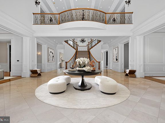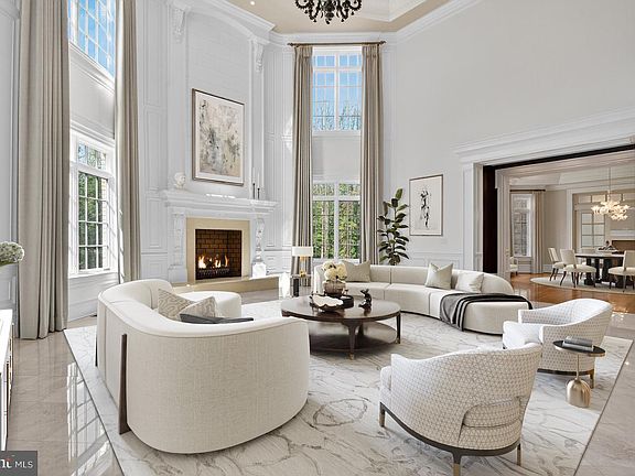 Set along a peaceful, tree-lined lane, 1174 Old Tolson Mill Road reveals a stunning, stone and brick gated estate, with award-winning landscaping by Charles Owen. This gorgeous home with over 15,000 square feet of living space designed by Arlene Christos reflects unmatched craftsmanship and elegant detailing. Offering both privacy and convenience, the property is ideally located just minutes from Great Falls National Park, Scott’s Run Nature Preserve, and the world-class shopping and dining of Tysons Corner. There is a 2-story portico with columns, a custom wood-and-glass door adorned with wrought-iron inlays welcomes you to a two story marble foyer, featuring a grand split staircase beneath a soaring mezzanine inspired by New York’s Four Seasons Hotel. The main level showcases elegant formal living and dining rooms, perfect for entertaining. The great room soars with a 24-foot ceiling and features a striking fireplace as its centerpiece. The gourmet kitchen is a chef’s dream, complete with dual center islands, custom cabinetry, and top-of-the-line appliances, including an espresso machine, warming drawer, refrigerator drawer, and wine cooler. The adjacent family room offers a cozy fireplace, a Meridian surround sound system, and direct access to the terrace, seamlessly blending indoor and outdoor living. Also on the main level, a paneled library features custom built-in shelving and a charming bay window. The guest suite offers a walk-in closet and a spa-inspired bathroom, providing both comfort and elegance. The upper level is host to the primary suite that spans more than 38 feet and feels like a five-star retreat. Its double-tray ceiling, Phantom screened balcony, outdoor hot tub, and travertine-clad spa bath create a sanctuary of comfort and style. Three additional ensuite bedrooms, each with walk-in closets, plus a large laundry room with dual washer/dryer sets complete this level. The lower level is a recreation haven that includes a spacious recreation room with a masonry fireplace, a central wet bar framed by twin wine cellars, a game room, state-of-the-art home theater, and a spa with steam shower and sauna and a generous guest suite. The home is equipped with 18 interior and exterior cameras, hardwired doors and windows, and a 21-day recording system. Cell signal is enhanced on every level, with integrated smart home automation and a comprehensive security network. A Crestron smart system controls lighting and audio throughout the home. Security, and motorized shades in Owner's Suite are easily managed from your smartphone. Outside, the estate spans two private acres with fully fenced grounds, highlighted by expansive terraces and meandering pathways. Built for both convenience and performance, the home features a three-level private elevator, dual garage lifts for five vehicles, four HVAC systems, a central vacuum, and an 80kW Generac generator ensuring uninterrupted comfort. Pool & terrace are proposed renderings.