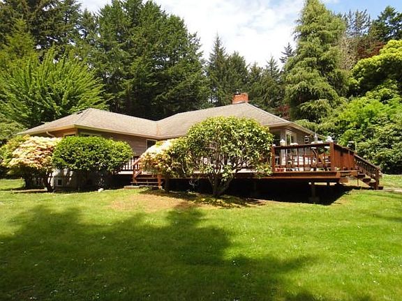 WONDERFUL TRINIDAD FOREST LOCATION with a delightful 2 bedroom, 2 bath comfortable home on 5 acres. Easy floor plan open with living and dining combination, efficient kitchen with Corian counters, utility and bonus room. Fireplace and forced air heat. Large deck and covered porch. Ideal blend of forest privacy with spacious meadows, fruit trees, and grassy areas. Double detached garage+separate 760 s/f shop/garage, skylights, and roll up doors. Near trail to the beach.