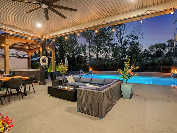 Functional laundry spaceIncredible backyard entertainment spaceBuilt out electric fireplaceOversized islandCovered entertainment spaceWalk in closetAccent wall