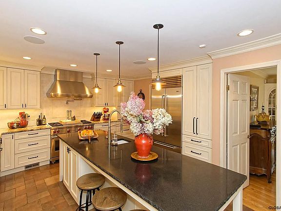 SNEAK PEAK! More photos to come! Nestled on 5.2 acres in the heart of Niskayuna, this all Brick home features 4 Bedrooms & 3 Full Baths. Enjoy your Custom Kitchen w/48 Wolf French Top Range, Sub-zero Fridge, Granite countertops, Brookhaven Cabinets, Farmhouse Sink, Wet Bar, just to name a few! Family Room w/wood burning F/P & French Doors leading to your patio where you can enjoy privacy & exterior surround sound! Hardwood Floors Throughout, Built-in Cabinets, Crown Molding, Formal DR, Master Suite w/Gas F/P & Walk-in CA style Closets. Fenced backyard & irrigation system. 4 Car Garage & Carport. Walking Trails and privacy makes this home the ideal escape while being convenient to all shopping, eateries, and entertainment. Call Listing Agent For Showings! *Gas Grill Excluded*