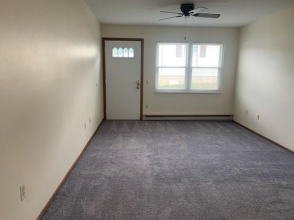 Property was referbished one year ago. New selfcleaning stove, disposal, modern refrigerator etc. New kitchen cabinet doors and drawerfronts. Unit fully repainted. New carpet. Bathroom has tub/shower and new commode. New A/C with heat mini split unit. Tile kithcen floor was cleaned and sealed. Washer/dryer in unit. Livingroom and bedroom ceiling fans. Single garage with opener. New storm door at entrance. Lease term is one year. Condo association takes care of all outside maintainence including, mowing, landscaping, snow removal on streets, driveway and sidewalks. Trash removal is covered. All other utilities are the responsibility of the tenant. This is a non smoking, no pet property. Move in requires first, last and a security deposit.
