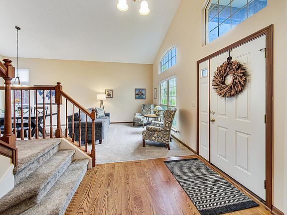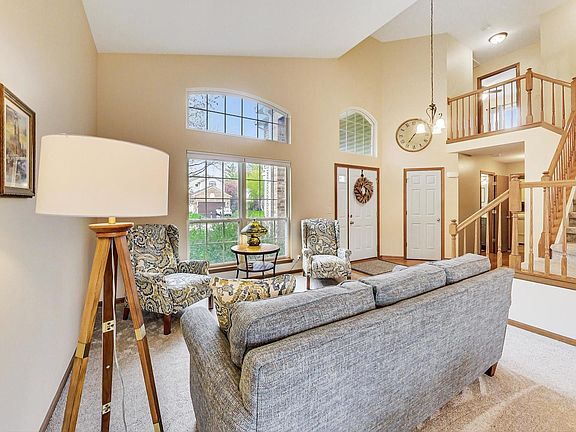 Perfect home for any life-stage in Big Sky! This 4 bedroom, 2.1 bath home w/ finished basement has all the space you need for living and working from home, along with a wonderful outdoor space for relaxing and entertaining. The first floor has cathedral ceilings in the entry way, along with floor to ceiling windows with soaring ceiling lines in the living and dining room making for a very bright, inviting experience. The kitchen has newer appliances and plenty of space to cook and eat. The family room is warm and cozy with a gas/wood burning fireplace and gorgeous hardwood floors. Upstairs the master suite has vaulted ceiling along with two walk-in closets and a private bath with dual vanity. Upstairs there are 3 additional bedrooms all with spacious closets and a bathroom that is perfect for guests or kids to share space with a door between the sink and tub/toilet. Do you need more space? There is a full, finished inviting basement area for playing, hanging out and/or doing hobbies, along with separate bonus room/office & oversized storage room. Don't forget about the wonderful outdoor space with a huge concrete patio, including pergola and ample space for summer parties. Additionally, the perennial landscaping is easy to keep-up and beautiful! This well-maintained house has had updates, including new: carpeting throughout (2022), 8x8 storage shed (2022), furnace (2020), A/C (2020), fence (2021), renovated first floor bathroom (2021), refrigerator (2021), dishwasher (2022), hot water heater (2019), updated landscaping (2020), and almost all rooms painted with window blinds replaced. Don't miss out!