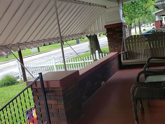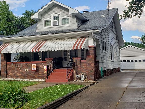 Well maintained 3-4 bedroom, 1 bath bungalow with 2.5 car detached garage on the east side of Evansville. The covered front porch spans the entire width of the home and so does the huge living room. The living room has built-in bookshelves on one end and a coat closet. Just beyond the living room through the classic curved archway is a large formal dining room. There's 1 bedroom on the main floor with the full bath. 2 additional bedrooms upstairs with a common area which could be used as a 4th bedroom or 2nd floor living room. Full unfinished basement with newer high efficiency hvac and hot water heater. The basement has a workshop and washer/dryer which are included. The fenced back yard is deep with 2 yard barns, basketball goal and concrete back porch. Replacement windows throughout, roof on front of the home is 1 year old and the back roof is 7 years old. The detached garage offers hot and cold water at the utility sink and furnace. Seller offers a home buyer's warranty for buyer's peace of mind.