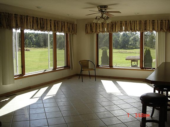 Executive 4 bedroom, 2 bath, 2 story home on 3 acres, with 2 large decks, covered and uncovered. 4 stall attached independently heated garage with blacktop drive. Kitchen has open dining room all with tiled floors and stainless appliances and dishwasher. Stairs to 2nd floor is 4' wide. House is fully carpeted. Renter responsible for all electric and heating. Also must help mow the lawn every 2 weeks. A dog can be allowed, no smoking indoors. Very large basement can be used as workshop or office. Men all love the huge garage and the women love the kitchen. Everyone loves the fact that it is in the country on a blacktop road, and 2 blocks from Hwy 73, so no mud on your vehicles. Close to Lake Nepko and Lake Wazeecha in Rapids. Only 15 miles from Ho-Chung casino and Nekoosa. Many Dining and drinking establishments in the area as well as shopping.