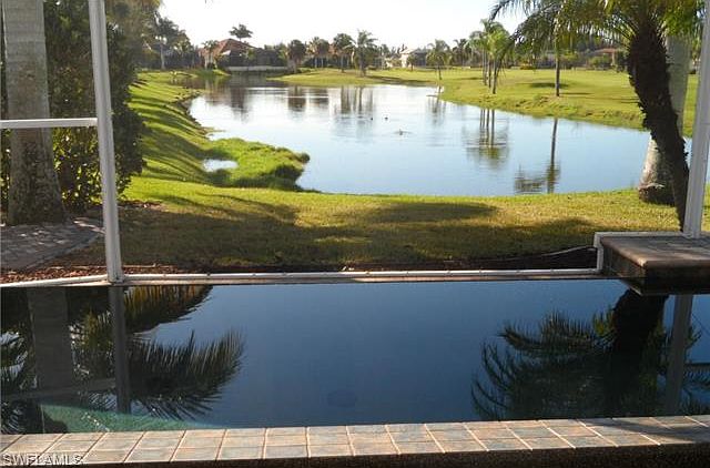 Exceptional, beautifully appointed home in Cape Royal ~ Cape Coral's only gated golf community. Situated on a highly sought-after south facing, oversized lot! Beginning w/the pavered, circular drive, tile roof & 3 car garage, no expense was spared in this lavish yet comfortable home. Custom leaded glass entry doors, wind-rated double-hung, dual pane windows, porcelain tile on the diagonal, extensive use of granite in kitchen & all 3 full baths, custom light fixtures & ceiling fans throughout, crown moldings, double tray ceilings, custom window coverings, roomy master suite with 2 walk-in closets w/built-ins. Impressive master bath offers a jetted tub, walk-thru shower, dual sinks, wood cabinetry, custom tile work. Stunning kitchen with wood cabinets, crown molding, granite, stainless appliances, pantry & lots of storage. Spacious great room with long water views of the lake & disappearing corner sliders. The extravagant, vanishing edge salt water pool is heated with both electric and solar & features a full-length pavered lanai w/ built-in bar that will make you feel like you're at an exclusive tropical resort. Low yearly HOA fee of $720/year. Golf & tennis membership is optional.