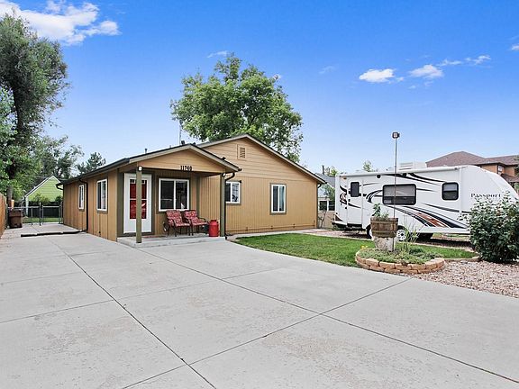 Spacious ranch home on nice block with numerous higher end homes. Easy one floor living. Kitchen has slab granite counters, tile backsplash, recessed lighting and natural light from two new skylights. Hardwood flooring in kitchen, eating space, bedrooms and hallway. Vaulted family room with evaporative cooler and gas heating stove. Master bedroom updated to include 12x4 walk-in closet and remodeled 3/4 ensuite bath, with large shower, new vanity and tile flooring. Secondary bedrooms share a second updated full bathroom, with tiled Jacuzzi tub surround & newer vanity. Main floor laundry includes cabinetry for additional storage. Great fenced yard with several off-street paved parking spots, including RV parking. Large storage shed 20x12, that will fit an automobile. Covered front porch and large back patio. Add'l storage behind shed. Roof, Gutters and Skylights replaced in 2017. New boiler installed 09/2012. Newer windows. Close to West Line light rail and shopping. No HOA or Garage.