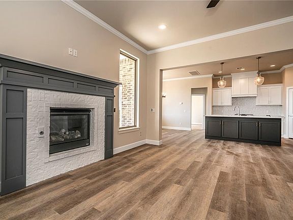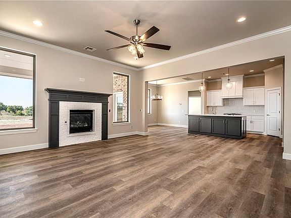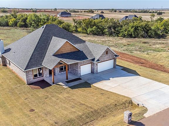 OPEN HOUSE SAT and SUN 8-5 Adjacent to Cedar Valley Golf Club. Make sure to ask about the optional membership. This new construction home features a wide open floor plan, anchored by a large kitchen island, quartz counters, and stainless appliances and large dining area. The primary bedroom has a door onto the oversized patio where you can enjoy evenings in front of a wood burning fireplace. The primary closet enters directly into the utility room for ease of laundry. The exterior brick and cedar gives a rustic feel to complement the surroundings. 3 car garage for all your toys, and OUTBUILDINGS & CHICKENS are allowed! Ask about our other available homes in the neighborhood. Easy access to OKC or Guthrie. From Hwy 74 and Industrial, go one mile East to entry.