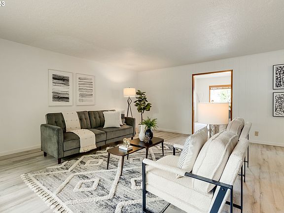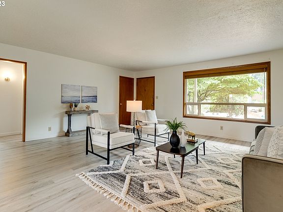 This adorable, light-filled ranch will have you swooning! Fantastic layout offers an expansive living room, formal dining area, spacious bedrooms, enormous kitchen with ample counter space and storage, and laundry room. Adorned with vinyl flooring, recently updated bathroom, and newer windows. Attached garage offers options for a workshop, art studio, or additional storage. Lovely outdoor space with patio, plenty of room to garden, and RV parking. Recent updates include: new PEX plumbing throughout, new water line to main, new electrical panel, and radon mitigation system. Great neighborhood; close to transit, commercial districts, and local parks. [Home Energy Score = 2. HES Report at https://rpt.greenbuildingregistry.com/hes/OR10114553]