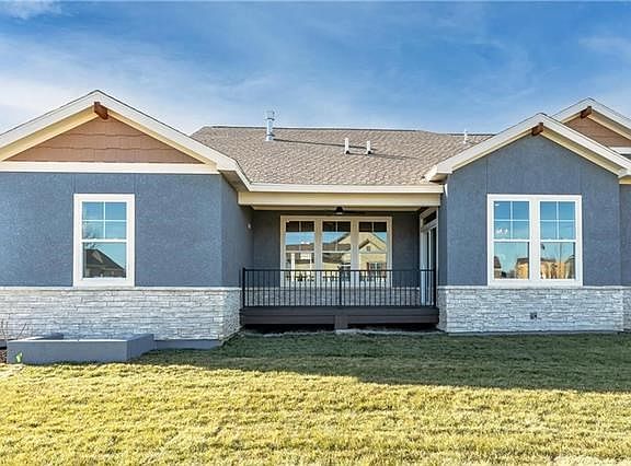 Summer Special: No HOA due for 60 days from contract. MOVE-IN READY NOW!! Spacious, light-filled villa features covered front porch & covered deck! 2 BR's, 2 bathrooms & laundry on main level. Lower Level has 2 BR's, 3rd full bathroom & huge rec room w/ wet bar. Gorgeous hardwoods thru main living areas, tile in all bathrooms & laundry, granite counters & custom cabinets throughout home! Large kitchen sports ss appliances, farm sink, gas range w/ air fryer, cleverly designed walk-in pantry with prep area, & sizable island w/ bookshelves! Roomy walk-in closets. Stunning exterior features stucco w/ stone wainscoting AROUND ENTIRE HOME! Community pool, play area, trails, pickleball court! PHOTOS ARE OF THE FURNISHED MODEL. Great shopping & dining nearby, as well as beautiful Olathe parks & trails! Easy highway access minutes away. Our exclusive community of maintenance-provided villas offers the carefree lifestyle you deserve! FURNISHED MODEL ACROSS DRIVEWAY OPEN 12:00 - 5:00, FRIDAY THRU TUESDAY & BY APPOINTMENT. SEE SUPPLEMENTS FOR FULL LIST OF STANDARD FEATURES & AMENITIES/HOA COVERAGE.Additional one time Annual Master HOA of $461 2021-08-13