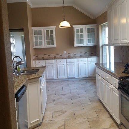 Large fenced in back yard for your dog to roam. House is 100% tiled floors for easy cleanup. Nice clean home ready to go. Up grades include custom shelving in living area, Upgraded cabinets in breakfast room Kitchen is spacious and open to the living area with pantry. Large indoor utility room. Split floor plan with big master w/huge bathroom that includes his & her vanities/garden tub & separate shower. Sun room/office has been added with access to back yard. New 2" faux wood blinds have been installed. Walls are freshly painted inside. Also have roll down Hurricane blinds install on all windows with access to roll down from the inside. Both city water and sewage is available. Renter is responsible for upkeep of lawn, both water and electric bill.