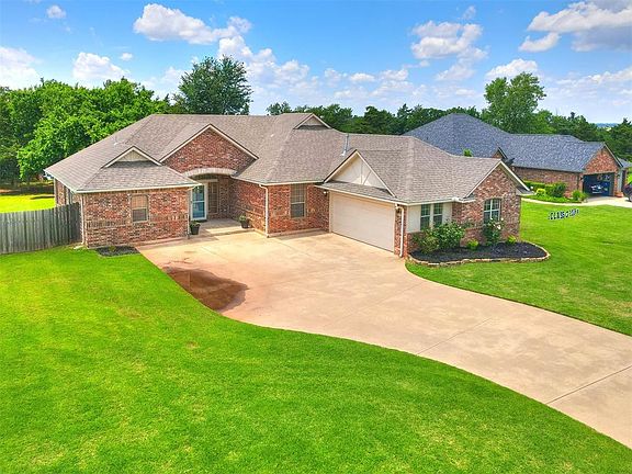 3/4 acre wooded cul de sac lot, award winning EDMOND SCHOOLS, HOA allows shop building up to 25X25!! The home itself offers a large isolated master suite with walk in closet, double vanities, separate tub & shower!! Stunning custom cabinetry, beautiful versatile granite tops throughout, handsome tile flooring, gas line for a gas range... Nice size laundry room, bonus 1/2 bath, large two car garage... Outside enjoy the quiet and peaceful setting while sitting around your outdoor fire pit!! Plenty of room for the kids to play and even enjoy the nice play fort out back!! Come see for yourself, you wont be disappointed!