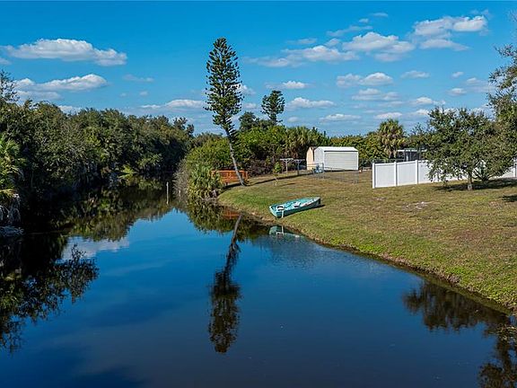 Discover your SERENE FLORIDA RETREAT in this CUSTOM WATERFRONT HOME, perfectly situated outside of any flood zone for HUGE INSURANCE SAVINGS! This spacious 2-bedroom, 2-bathroom, 2-car garage residence offers charming curb appeal, with potential to add a third bedroom and ROOM FOR A POOL. Enjoy DIRECT CANAL ACCESS leading to beautiful Blueberry Lake—perfect for boating and fishing enthusiasts. BRING YOUR BOAT AND YOUR FISHING POLES! Plus, with NO DEED RESTRICTIONS, embrace the relaxed Florida lifestyle in this nearly 1,800-square-foot home built in 2007. Step into the inviting front screened patio that welcomes refreshing cross breezes from front to back. Inside, soaring cathedral ceilings and double front entry doors open to a formal foyer, expansive living room, and separate dining area ideal for all your entertaining needs. The CHEF'S KITCHEN shines with a convenient breakfast bar, cozy nook, Frigidaire smooth-top stove, microwave, GE dishwasher, Maytag French door refrigerator, and a SPACIOUS WALK-IN PANTRY. Retreat to the TRANQUIL MASTER BEDROOM with stunning canal views, a gorgeous TRAY CEILING, PRIVATE LANAI ACCESS, ceiling fan, large walk-in closet, and an updated en-suite bathroom featuring a LUXURIOUS ROMAN SHOWER and stylish vanity. Guests will appreciate the OVERSIZED 2ND SUITE, boasting unparalleled canal views, a CUSTOM TRAY CEILING, ceiling fan, wall closet, and an en-suite bath/pool bath for ultimate comfort. The highlight of this home is the SPRAWLING 35 x 11 SCREENED LANAI with SLIDERS FROM MOST ROOMS—perfect for enjoying sunsets and nature’s beauty. Dual overhead ceiling fans, an outdoor shower, EXTENDED OPEN AIR PAVER PATIO, and a PRIVACY-FENCED BACKYARD create an inviting space for grilling , gatherings and creating everlasting memories with family and friends alike. Additional benefits include one of the largest inside laundry rooms you’ll find, a big two-car garage with automatic door, a 2023 NEW ROOF, and easy access to amenities. Several community parks are nearby, offering walking paths, boat launch, fishing docks, picnic shelters, BBQ grills, and playgrounds.This property is only minutes away from WORLD CLASS FISHING, GOLF COURSES, shopping, dining, SW FL beaches in Boca Grande and Manasota Key. Don’t miss your chance to make this charming waterfront home your ULTIMATE FLORIDA GET-A-WAY! Call to schedule your personal tour today!