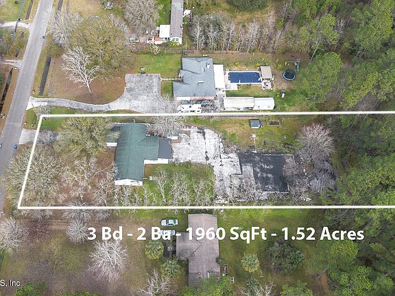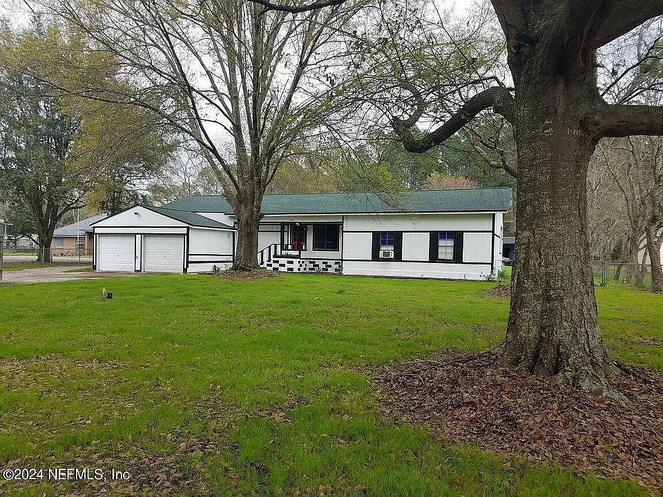 Owner financing also available with 20% down. Click on the photos tab to see the 3D virtual tour. Space galore! Enjoy the huge front and back yard fenced, situated on 1.52 private acres! The yard is open and has so much room for many projects or storage of large trucks, RV's, or other equipment, and includes a wooded area behind the fence. Has opportunity to build another house on the property. Nestled in Dinsmore on a dead-end road where you still get that country feel but just a short drive to all conveniences including a new Baptist hospital, River City Marketplace mall, private school, local community college, with quick access to I-295, the airport and other major highways. Horses and livestock permitted. There's a shed on site for lawn equipment, mowers, etc. This 3 bedroom, 2 bath mobile home has been built on with additions. It has a large den, separate living room, and back porch to enjoy the quiet. It has been and will continue to be a great investment. Roof is 5 years old Lots of attic space above the garage. PadSplit and Airbnb investment opportunities.