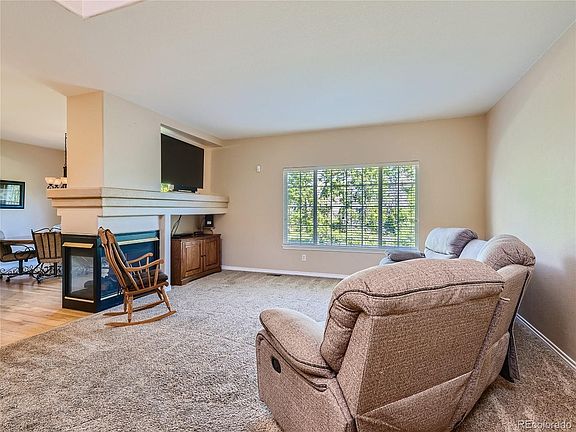 Spacious 2-story home in the well-maintained community of Weaver Creek Townhomes *3 bedrooms & 3 full bathrooms plus main-floor powder room *Quiet location backing to a greenbelt & walking path *This home features central AC, rounded drywall corners, 6-panel doors, white trim, wood blinds, recessed lighting & security system *Hardwood floors in entry, kitchen & dining room & powder room *Bathrooms have tile floors *Living room has a built-in entertainment center, large flat screen tv with sound bar, carpet & huge windows overlooking open space with walking path *Large kitchen featuring newer black stainless appliances, brand new dishwasher, ceiling fan, pantry & shares a 3-sided gas fireplace with the living room, and a dining room that opens to private deck overlooking open space *Master bedroom has private 5 piece bathroom with tubular skylight, walk-in closet, wall-mounted flat screen tv, ceiling fan, pergo floor & bright windows with wood blinds overlooks open space *2nd bedroom with ceiling fan, wood blinds, pergo floor & closet shelving, overlooks open space *3rd bedroom with ceiling fan, wood blinds, pergo floor & bright southern exposure *Finished garden-level basement includes carpeted family room with recessed lighting & wood blinds, full bathroom & storage area, space for easy 4th bedroom *Main-floor laundry space with shelving *Desirable South facing 2-car attached garage with auto opener, tons of shelving & freezer included *Any personal property currently on premises may be included at buyers request *Great SW location close to C470 & W Hampden Ave *Convenient to Bear Creek Lake, Chatfield and Roxborough State Parks, several fine golf courses, shopping, & outstanding JeffCo schools *Security system is not active *Satellite system includes dish only *Some HOA restrictions on use as rental property.