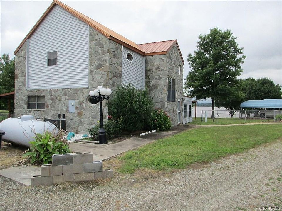 2 story waterfront home on 2 sloping lots! Plenty of room, large living room with lots of windows, main bedroom downstairs, 4 carports, detached workshop and great covered porch facing the lake. Raised bed garden and black berry bushes! Come see this one!