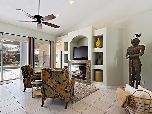 Beautiful open layout blossoming in natural lighting conveniently spread on single level! Move-in ready, this home offers neutral paint and ceramic tile in all the high traffic areas! High ceilings in the living room with electric fireplace to warm chilly evenings and into the stainless steel kitchen with new dishwasher and coveted gas range. Breakfast area has views of the private pool and yard out back. Separate dining room ideal for entertaining. Master retreat has sliders to back & private bath with tile tub and separate shower. 3 additional bedrooms near guest bath, and an office/den with tile flooring. Step out back to an oasis escape: Screen-enclosed salt water pool w/ solar heat. Hot tub w/ gas heater. Exterior gas connection for grill or future outdoor kitchen! Gazebo w/ privacy curtains just steps from the pool- enjoy year-round! Fenced grass yard with 2 locking gates ensure privacy. Even more luxurious touches: Whole house antennae in the attic for basic TV reception- cut that cord! Irrigation system & wired for security system. Built-in timer for exterior front lights- never come home to a dark house! Washer & gas Dryer are included! Furniture is negotiable. So many options and upgrades here- home is ready for easy living! **If measurements or if exact square footage is a concern, buyer is advised to independently measure.**