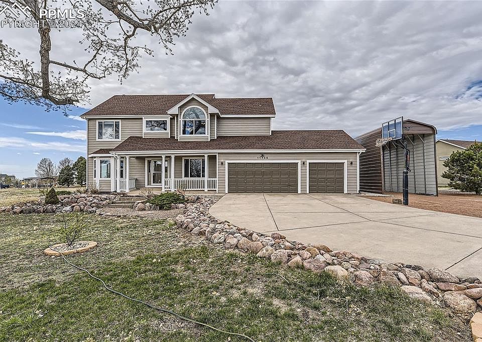 Welcome to this fantastic home in Peyton! This stunning property offers everything you've been searching for & more. Boasting a spacious layout with six bedrooms + an office, 3.5 recently updated baths, a 3-car garage + drive through RV garage, this home provides ample space for comfortable living & entertaining. Situated in a cul-de-sac on just over an acre of land, enjoy the luxury of privacy while still being conveniently located near all amenities. Step inside to discover a beautifully updated interior featuring modern finishes & stylish touches throughout. Enter through the covered front porch to the office on the right & a formal living area to the left. Further on you'll enter the beautiful kitchen featuring hardwood floors, granite counters, an island with 2 bar stools, pot rack & stainless steel appliances. Off the kitchen is a formal dining room, as well as an eat in kitchen with desk area, a walk out to the backyard & large patio and yard. The kitchen flows into the gorgeous family room featuring vaulted ceilings, gas fireplace, ample natural light & power blinds. Retreat to the spacious & light primary suite, with beautifully updated ensuite bath, complete with large walk in tiled shower w/2 shower heads, private water closet, & dual marble topped vanities + tasteful backsplash. With five additional bedrooms, there's no shortage of space for family and guests. Plus, the dedicated office provides the perfect space for remote work or study. The finished basement features a rec room complete with pool table! *New exterior paint *Newer windows *Power blinds in Primary & Family room *Newer roof + solar (recently inspected) * All appliances + pool table & bar stools stay * Work bench in garage * Walking path out back door to smaller rec center * Plus free access to larger rec center a short drive away *Brand new carpet * Interior & windows professionally cleaned * Don't miss this lovingly cared for home - book your tour today and make it yours!