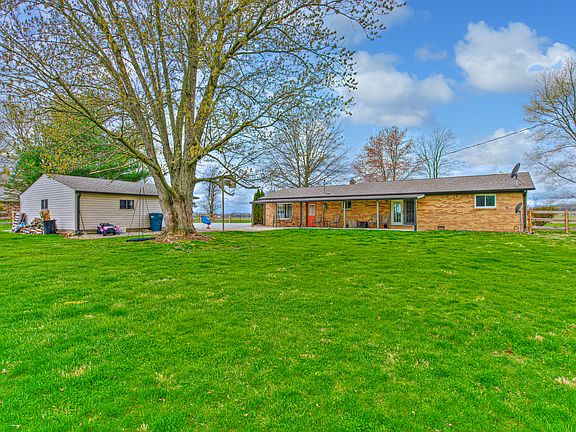 This 1886 SF Brick Ranch, 3 bed/2 full bath sitting on almost 2 acres (completely fenced) will wow you! Home features a large living & dining room w/ open floor plan. Former garage has been completely refinished for additional living space, office or 4th bedroom. Remodeled kitchen features beautiful white cabinets, new counter tops and backsplash, panty, and SS appliances stay! Large master ensuite w/ stand-up shower. 2 additional nice size bedrooms w/ closets to match. New carpet & LVP flooring throughout. Newer windows, freshly painted and new lighting too! Relax on the covered front and back patio. Giant 2 car detached garage has plenty of space for a work shop. 2 story mini-barn. All electric / (AES) low utilities & taxes. Roof replaced in 2015 / HVAC in 2007. Home warranty added for peace of mind.