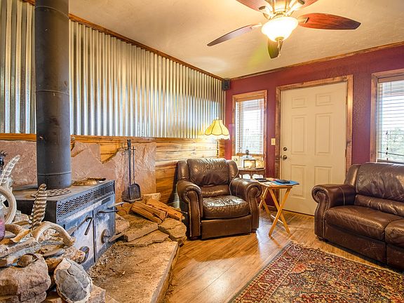 This 2 bedroom 2 bath cabin on 40 heavily wooded acres is the ultimate private hideaway . Bordering BLM with immediate access to the Phils World bike trail and thousands of acres of public land. The well built cabin is totally off grid and features a quality solar array with new batteries, wind turbine, and back up generator. The interior of the home is nicely done and so cozy with solid wood doors,new flooring, carpet, wood stove, and a gorgeous rock hearth around the wood stove. Kitchen is well designed with handsome cabinetry and stainless appliances. There's also a pantry and laundry room just steps away for more storage Metal roof and siding keep the exterior durable and low maintenance and there's nice sturdy covered porch that provides the perfect space to enjoy the outdoor serenity. The detached 1 car garage shop provides covered parking, workshop space, storage and is wired for 220. Fully fenced- The land itself is gentle rolling wooded terrain with a wetland feature which attracts birds and other wildlife. The seller has enjoyed every foot of this land and future owners will likely appreciate the trails that meander around the land offering a great way to hike or 4-wheel around the property. Borders BLM and teeming with abundant wildlife including deer, turkey, mountain lion and bear.