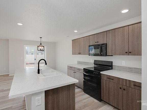 Get $15K now thru 3/31 with the Early Spring bonus! This brand new home located in vibrant Star, Idaho welcomes you with open arms. The Hugo 1650 is endearingly charming and reassuringly practical. The main level welcomes occupants and guests alike with open and friendly living spaces. The kitchen includes black appliances and a spacious kitchen island that overlooks the living room and dining room. Easy access to the yard is just steps away through the dining room. Head upstairs where a primary suite spans the entire rear of the home and contains a walk-in closet and spacious en suite bathroom. The two other bedrooms and the laundry room are also situated upstairs along with a full bathroom. The garage offers plenty of space to park cars and toys or use as storage. Photos are similar. Close proximity to future Pavillion Park which features pickleball & basketball courts, splash pad and dog park! Photos are of actual home!