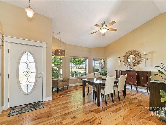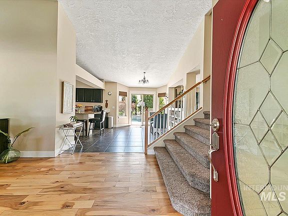 A beautiful two story home that is located in a desirable SW Boise location and is just minutes from the newest YMCA & within walking distance to schools, playgrounds, & parks. This home welcomes you with a large wrap around front porch with beautiful landscaping. Inside you will enjoy the vaulted ceilings and the two living rooms, including one with a stone gas fireplace. The kitchen has gorgeous granite countertops, a large island and plenty of cupboard space. Main floor comes with a guest bedroom that has a full bath. Primary suite has a walk-in closet and dual vanities. The backyard is perfect for entertaining! Spacious back patio with a pergola that is surrounded by mature landscaping that allows for plenty of privacy, and a stunning low maintenance, saltwater in-ground pool.