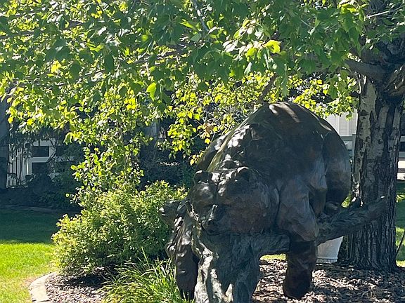 Private acresLarge deckMain-level in-law suiteBronze sculpturesOpen-concept livingProfessionally landscaped groundsExpansive windows