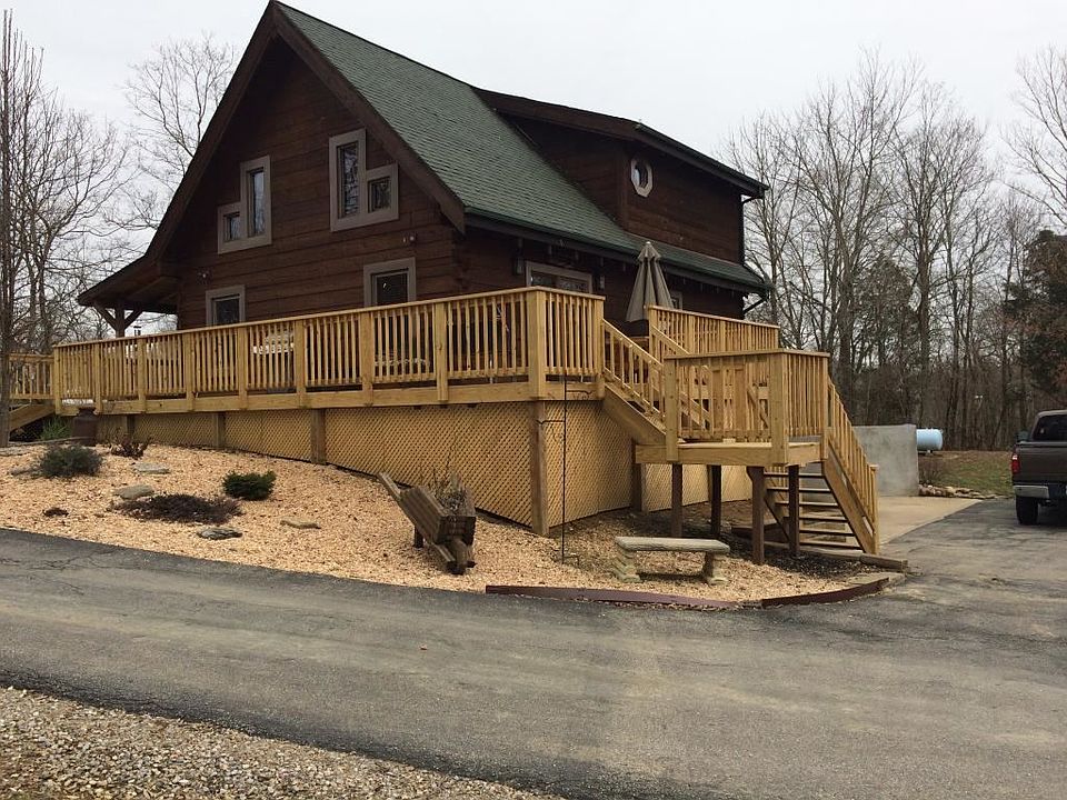This Heritage Log home features many new upgrades. 3 Bedrm & 3 bath home with finished walkout LL to patio & hot tub. Coverd front porch & brand new wrap around deck, extreme landscaping, paved driveway, oversized 2 car garage & 24x40 shed/mancave with new concrete pad & elec. hookup & dump station for 3 campers. All on 12 wooded acres. Very Nice Property.