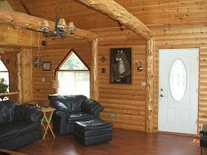 Neat resort style log-sided home on wooded acreage deserves your attention! Custom cabinets, cathedral ceilings, and pretty view make this home a pleasure to live in. Great location between Harrison & Branson in pretty country setting! Assumable FHA loan for qualified buyers! See supplement for additional information!