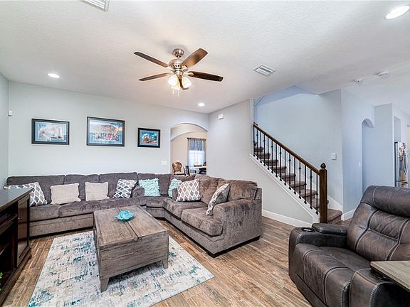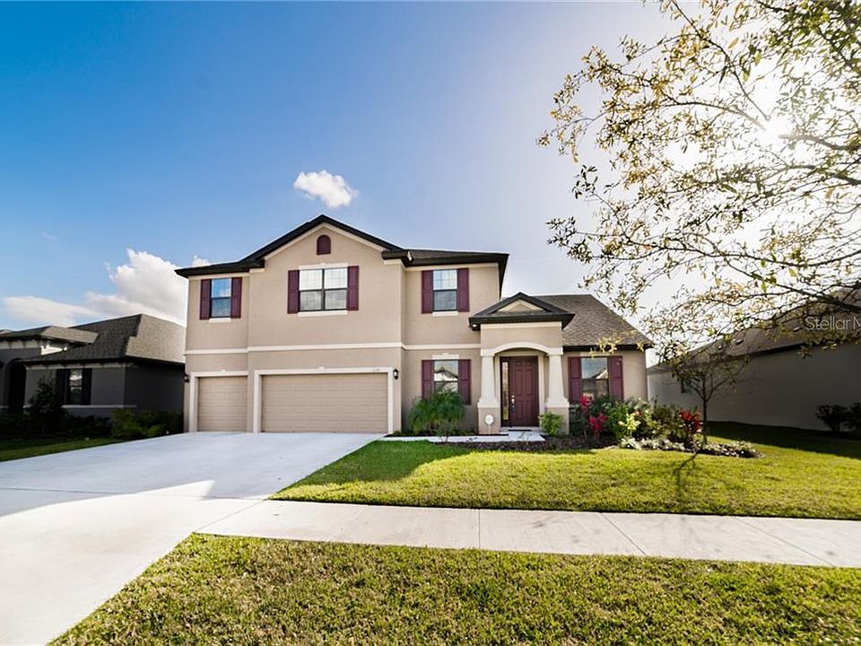This high-quality built home with custom upgrades offers a unique floorplan with two master suites on separate levels. Very few homes in the area offer this superior option and is great for in-laws or additional family members. Upon entry, you are greeted by the grand foyer and separate dining room and will recognize that the owner spared no expense when building this exceptional home. The home offers upgraded features such as designer wood plank tile and added insulation to improve energy efficiency and sound reduction. The upgraded gourmet kitchen option was selected and includes quartz countertops, stainless appliances, pull out shelves in the wooden cabinets, large pantry, a center Island, and an attached café for casual meals. The office is located in the front of the home and is ideal for getting work done while at home. The 3 car garage is an added bonus. Recently added was a large screened and covered lanai to enhance your relaxing backyard time with no neighbors behind. The backyard has been fully fenced. The community pool and playground are a very short walk. Short commute to shopping, restaurants, hospital, Tampa, and MacDill AFB.