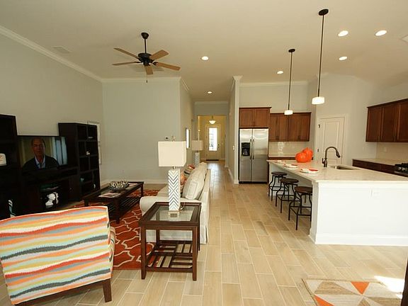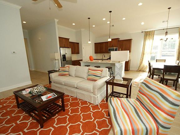 Beautiful open floor plan with 3 bedrooms, 2 baths, flex room/office. Main living area has 11 ft. high ceilings, Large kitchen with breakfast bar/ counter height island with granite, corner walk in pantry, stainless steel appliances with a natural gas cooking, and 36" staggered cabinets. Other standard features are hardwood floors throughout main living area, tile flooring in bathrooms and laundry, crown molding, and much more. Master suite has double closets, Tile Shower, linen closet, and double vanity. Large covered back porch off living area. Golf cart to the beach and The Market Common restaurants & entertainment.
