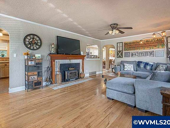 Large corner lot complete with basketball court. Living room with hard wood floors and fireplace. Kitchen with a lot of counter/cabinet space with eating bar and adjacent to dining room. Primary bedroom with ensuite bathroom and second bedroom with direct access to shared hall bath. Large utility room with cabinets and sink. Partially finished basement and 4th bedroom off garage. Covered patio for your outdoor entertaining. 2 separate garages - 1 car and 2 car. This is a must see property!