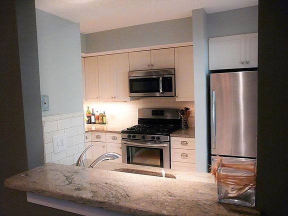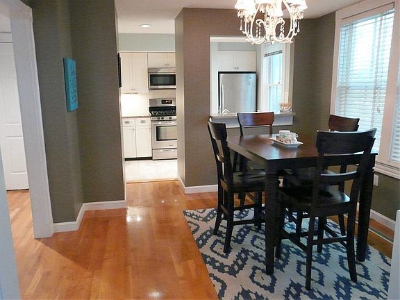 This Victorian style, 2 bed 2.5 bath, home boasts an open floor plan and hardwood floors in Newton's sought-after Chestnut Grove. The 2012 renovated kitchen includes recycled crackled porcelain backsplash, granite counters, and stainless steel appliances. An ivory stacked-stone feature wall in the living room, molding detail in the dining room, large half bath, and French doors to the private patio round out the main level. The second level includes high ceilings, a large bedroom, hall bath, and master bedroom with two closets. Features of the updated master bathroom include double sinks, slab tile floors, and marble bath. Laundry and Storage in the basement, central A/C, and two deeded parking spots. INCREDIBLE Location near 95 / Route 9 / Shops / Restaurants / Eliot T, Public Parks. Offers will be reviewed upon receipt. Private showings available now. First open house Sunday 11-12:30pm.