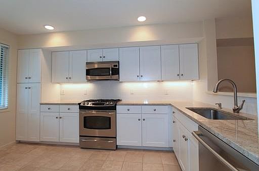 COVETED CHESTNUT GROVE COMPLEX!! Super convenient location to major routes. This 2 bed, 2 1/2 bath tri-level unit boasts new kitchen cabinets with travertine flooring and granite counter with tasteful tile back splash. The attention to detail with the design is noticeable throughout the home. The main living area is an open concept ideal for entertaining and day to day living. It has a dedicated dining area open to living room with gas fireplace and custom built-in cabinet surround. Sliders lead to a private covered deck. The third level has two en-suite bedrooms, one being the master consisting of a large walk-in custom closet. The lower level has a generous size mud room complete with storage and washer/dryer. A two car, tandem garage makes for easy, covered access into the home. Nestled into a mature landscaped setting that feels very country like, but city convenience just steps away.