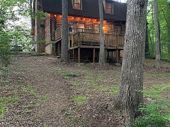 Unique log cabin chalet in gated private lakefront community. Jack and Jill loft upstairs and 2 bedrooms adjoined to a bath. Downstairs bonus room can be used as office, guest bedroom or dinning area. 1.5 bath and open floor plan. Large fenced back yard, deck, wired shed, full amenities including boat ramp, docks, beachfront playground, Olympic swimming pool, basketball and tennis courts, Minnie golf, 24/7 private security, plus an adjoining wooded bonus lot. Conveniently located just off i475 with all the major retailers restaurants grocery stores entertainment etc. Home will be available May 30th.