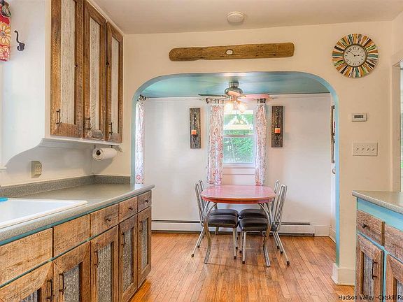 Upstate living awaits you in this charming 2 bedroom, one bathroom updated cottage. Minutes to downtown Kingston, New Paltz and Rosendale, this quaint home is cozy and comfortable, with elements of nature both on the interior and exterior. Current owners have lovingly remodeled the home, which is evident throughout. Completely rebuilt exterior deck is perfect for entertaining or relaxation on summer days or winter nights. Enter the home through the side door into a spacious mud-room with laundry room, where you can drop all your gear from your afternoon hike or day on the cliffs. Walk into the beautiful kitchen with refinished cabinets and sun-drenched dining area, living room is inviting with new pellet stove ideal for supplemental heat, enclosed porch with tin ceilings and walls is a perfect place to hang or work, two generous sized bedrooms and one full bathroom. Walk-up attic is partially finished and would be a wonderful addition as a media room/play room/master bedroom. Attic and enclosed porch are not included in the square footage, but certainly offer added value in the bonus space! Property is wooded and private sited on one acre with mature trees. Updates include new hot water heater, gas stainless steel stove, chimney liner and cap, all windows and light fixtures/fans, and spray foam. This is a lovingly maintained and updated Hudson Valley home at an unbeatable price with low taxes. Perfect for a weekender or full-time resident!