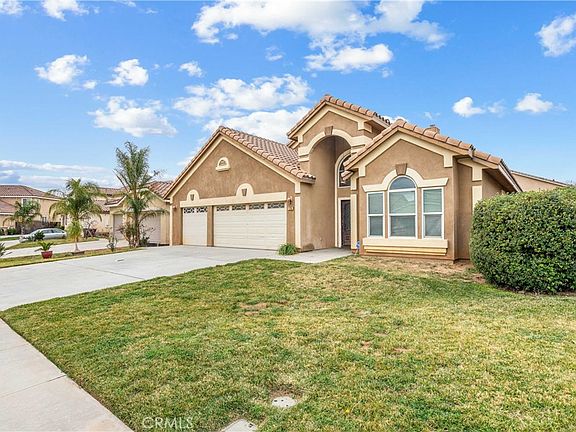 Welcome to this single-story home nestled in the heart of a desirable neighborhood! Boasting 4 beds, 2.5 baths, and 1785 square feet of tastefully designed living space, this home is truly one-of-a-kind. Step inside and prepare to be amazed by the open concept floor plan, seamlessly connecting the living room, kitchen, and dining room to create the perfect space for entertaining guests or spending quality time with loved ones. The tile flooring throughout the main living areas adds a touch of elegance, while the plush carpet in the bedrooms provides comfort and warmth. Your primary bedroom retreat awaits, complete with an attached bathroom featuring a luxurious soaking tub, walk-in shower, and dual sinks. With spacious rooms and abundant natural light flowing through every window, this home offers a tranquil and serene sanctuary for all to enjoy. The three-car garage provides ample room for all your vehicles, outdoor gear, and more. Say goodbye to HOA dues and Mello Roos, as this property offers you the freedom and savings you deserve. Situated on a generous 6970 square feet lot, opportunities for gardening, outdoor activities, and creating your own backyard oasis are endless.