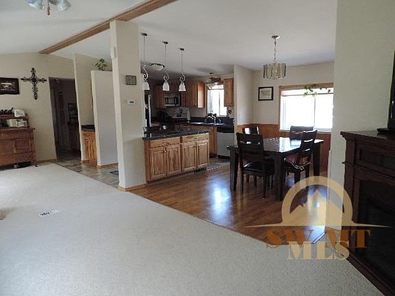 Immaculately maintained 4 bedroom, 2 bath manufactured home on permanent foundation. Comfortable floor plan& beautiful oak kitchen with pantry & optional formal dining or family room. 3 car garage, green house + 4 storage sheds provide plenty of storage. Fully landscaped acre with mature trees, only 2 miles from town. No restrictions!